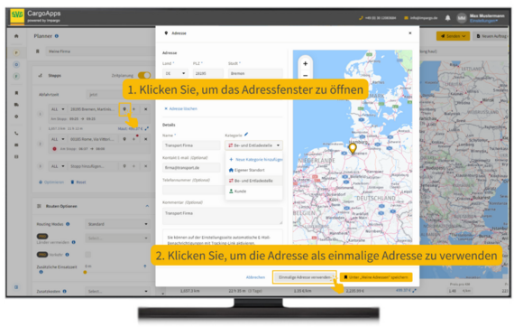 Mit der neuen Geofence-Funktion aktualisieren sich Stopp-Status jetzt automatisch. Sobald ein LKW die definierte Zone eines Stopps erreicht oder verlässt, erkennt das System dies per GPS und setzt den passenden Status – ganz ohne manuelles Eingreifen. Das spart Zeit, reduziert Fehler und sorgt für maximale Transparenz im gesamten Transportprozess.