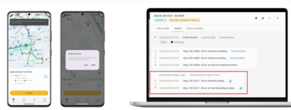 - Mehr Transparenz für alle: Disponent und Fahrer wissen jederzeit genau, wo der Auftrag steht.